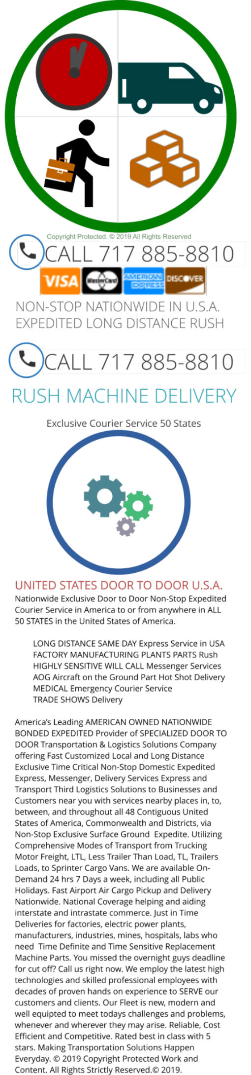 tic oor international airport airfield that needs to be expedited to factory, manufacturing or power plant now. yes, we can help with critical customized delivery to a point of your choosing, we can even pick up the paper work for you. Late payroll? We can help with that using our secure hand carry delivery. Forgot you phone or laptop computer, tablet, pad, or medication? Yes, We can securely pick it up and deliver to wherever you are. You have a critical time definite trip and need your passport and visa delivered to you. Yes, we can do that. You missed the over night shipping deadline because you are running late and their offices are closed for the late night, weekend and holidays? Yes We can help we are the oops guys that can save your delivery. High value aircraft, aerospace or high technology parts for shift down manufacturing that needs to be delivered across country coast to coast or in between or across town or in town. You need just in time delivery? Yes we can do that. Need labels, sleeves labels printing supplies delivered for production? Yes can help. You need a secure motor carried for your high value life science products expedited delivery? Yes, we can help. Need your medical pharmaceutical pharma ingredients and finished products deliery on an emergency basis? Yes we can help. Worried about your bids, documents, confidential usb flash drive, rfi, grants and proposals making your deadline. Yes we can help. Call us for a fast no obligation or pressure We welcome new business and customers and welcome back returning recurring ones. Need your missing ingredient or mis-routed shipment today. Yes, we can help you. Temperature controlled for special paint coating expedited non-stop same day delivery. Forgot your ticket? We can help. Need a hand carry air courier for electric power and auto manufacturing plants critical parts? Yes we can help, we are a verified local business with national reach and network offices on the left and right coasts and in anywhere and everywhere in between at anytime open today open 24 hours. We offer services you need and want, not like other guys who give you what you deserve. We strongly and firmly believe that we have decades of professional comprehensive combined skills and experience that qualifies to complete your tasks. You want a long distance company and local business that rated one of the best in the field that is highly recommended and trusted. Look no further you found us. You want positive results. We can help with proven efficient dependable anytime transportation solutions. During your search you will find transport information including official webpages images offices locations address terminals fast contact information phone numbers local courier delivery business documents view maps and driving directions places video air courier messenger hand carry delivery logistics shipping mailing moving air freight cargo motor trucking domestic cargo airlines next flight out temperature control auto power plant parts delivery Bonded Same Day Courier Service, Dependable Transportation Service, Secure Shipping Company, High Value Expedited Shipping Service, Highly Sensitive Same Day Delivery Services, Nationwide Shipping and Mailing Service, Coast to Coast Trucking Company, Cross Country Freight Forwarding Service, Premium Comprehensive Logistics, private banking delivery service, executive delivery service, express delivery, legal court filing hand delivery services, Rush Messenger Services, On-Demand Logistics Service, high confidential usb flash drive deliver service, original or certified notorized documents delivery service, Exclusive Moving Company, Corporate Moving and Storage Company, Parcel Service, Commercial Postal Service, Construction Job Site Delivery Service, Private Messenger Service, local delivery business, rescues for delayed or mis-routed shipments stranded at seaport, aiports, ports, trucking terminals docks, linehaul, direct point to point, open now today 24 Hours including holidays and weekends, exclusive non-stop long distance expedited services, on-demand airport pickup and deliveries, emergency medical delivery, time definite life sciences deliveries, aog, airport aircraft on the ground pick up and delivery for commercial or private jet charter, deadline residential or commercial couriers. We have specialized ex-
